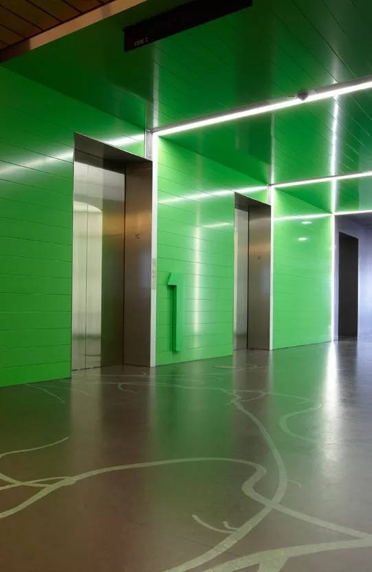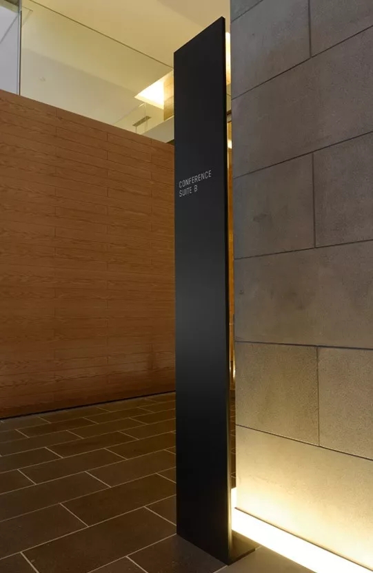 导视系统受到建筑“移动位面”的启发,通过具有创造性的雕塑与图形,为不同的场所赋予了相应的主题,标识不再孤立于建筑之外,而成了建筑的优雅延伸。